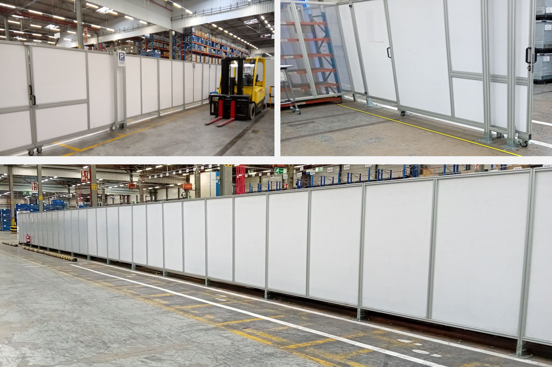 Here we show you a project carried out by the #eam #fluitecnik, where we have designed, manufactured and installed our own aluminium profile fencing, K-Per brand, with white simocel panels, for compartmentalisation and storage of products in the automotive sector.